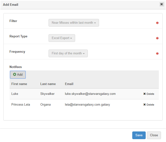 Click Add and select the desired report recipient(s) from the notifies filter.