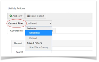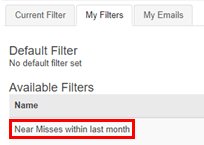 - Any saved filters can be easily accessed via the Current Filter drop down selection option above the Filter tabs. This is a short-cut route for applying saved filters.