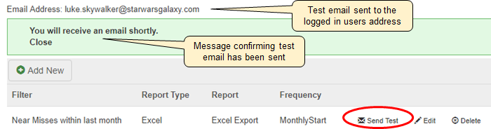 Once saved, the option to send a test email becomes available. It is best practice to send a test email to ensure it works as required.