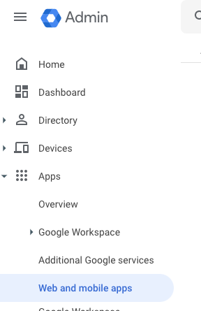 - Navigate to Apps then Web and mobile apps in the left-hand-side menu.
