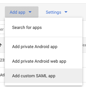 - Click Add App then Add custom SAML app in the center of the "Web and mobile apps" screen.