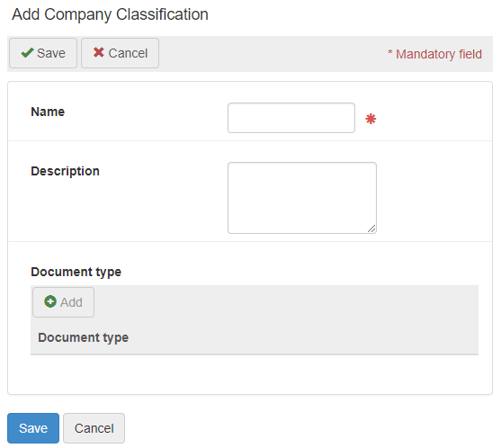Company classifications are created to specify the documents required from a contractor. For example, a contractor classified as low risk may only be required to submit a single document, whereas a high risk contractor may need three or more documents.