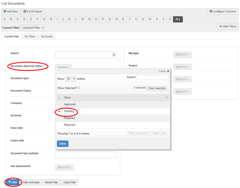 Managers or administrators need to validate the document before the document approval status is set to approved. This is to ensure the details the contractor has entered are correct and meets all requirements. After validating the document, the manager or administrator can either approve or return it.