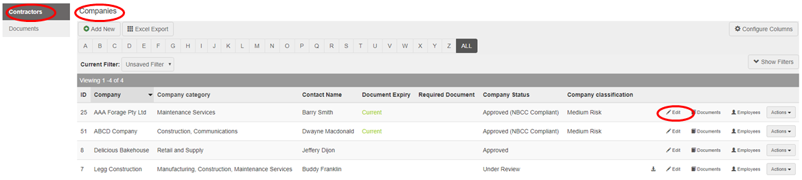 Each contractor can now be allocated a company classification and the required documents will automatically be listed as required.