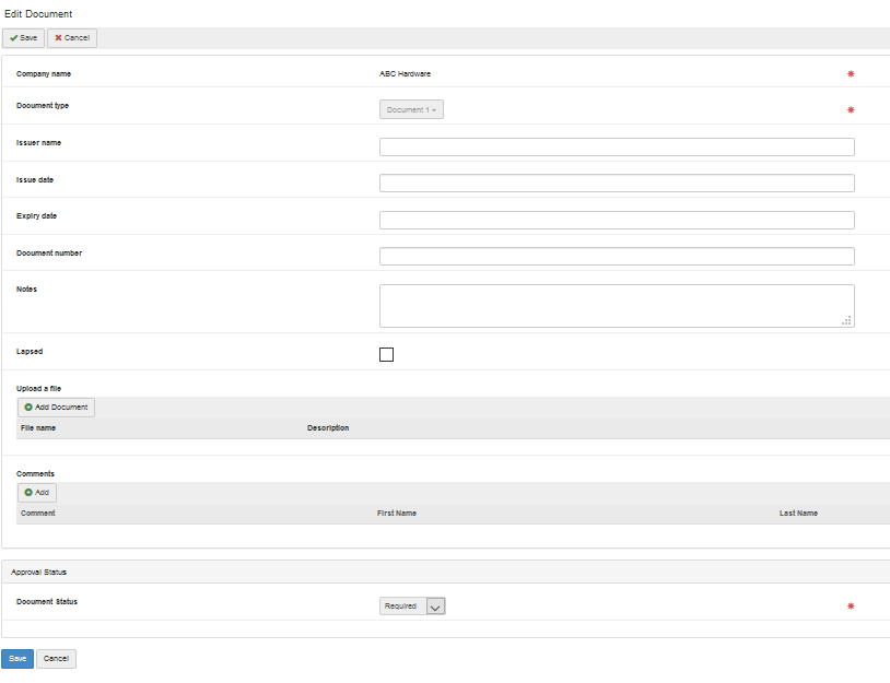 Tick if the document is to be lapsed. This will change the date of the document to grey, indicating it is a lapsed document. This will be will be read-only for contractors and can only be altered by an Administrator. |