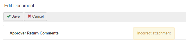 Document has been reviewed by someone with approve permissions and the document approval status set to Returned |