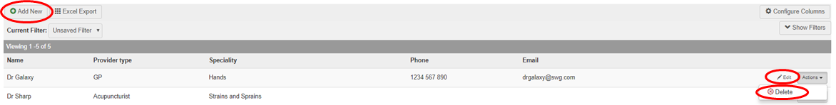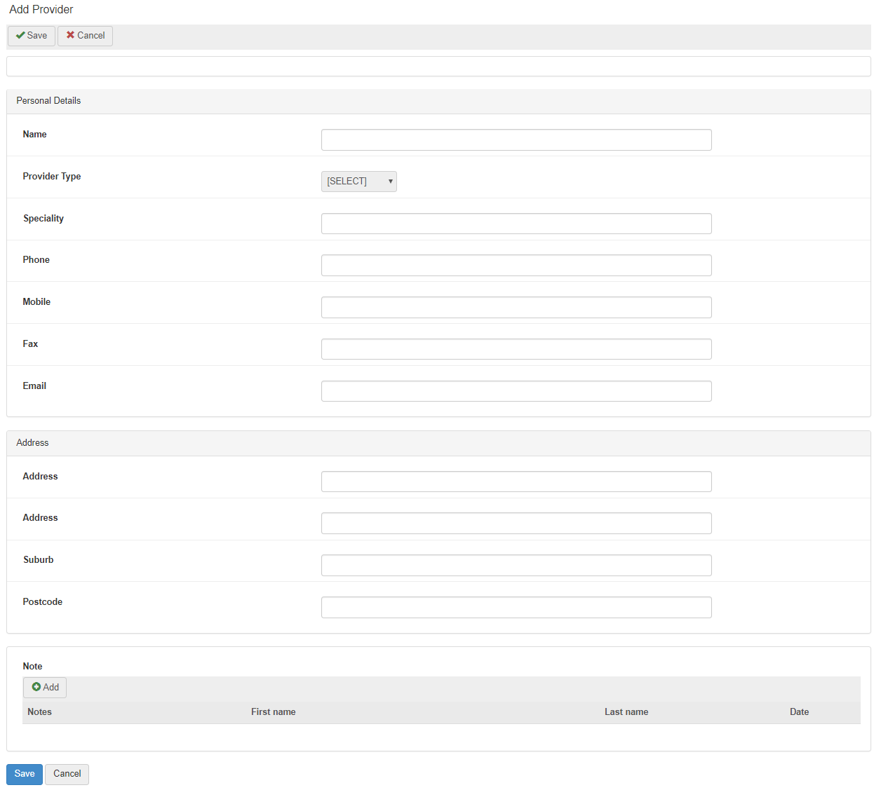 | Contact Details | Enter the contact details (phone and email) for the provider. |