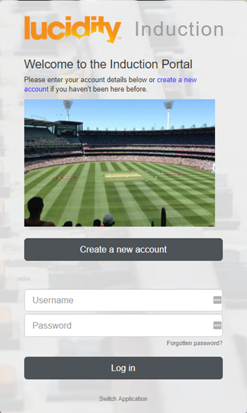 Induction home page, prior to logging in. |