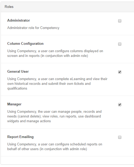 To assign a user access roles, from the relevant user account: