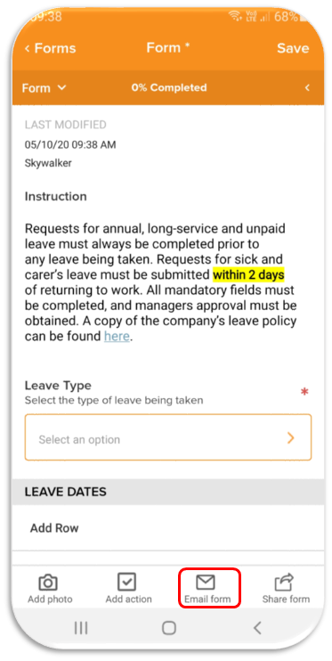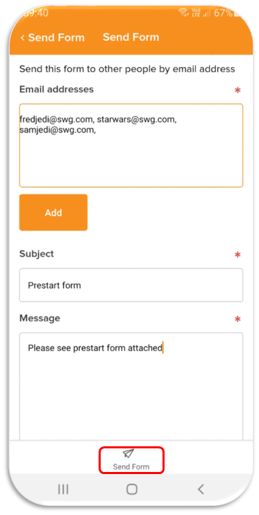- Tap Send Form to email a PDF copy as an attachment to all named recipients.