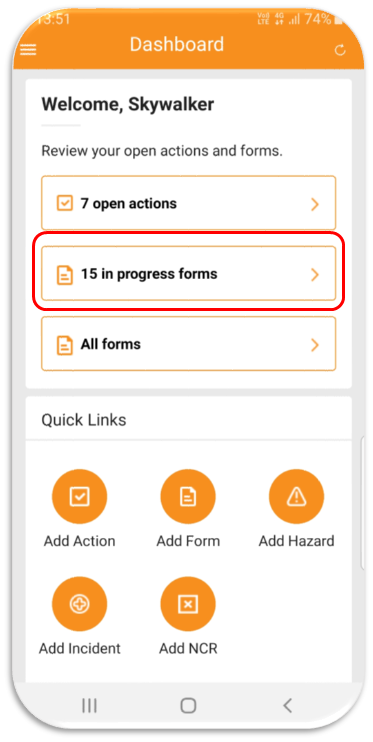 Tap # in progress forms.