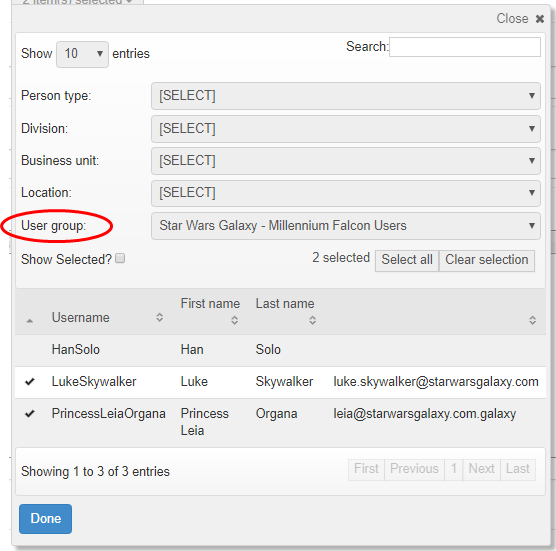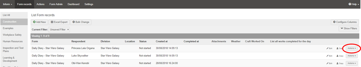 Form records can be emailed to users with or without profiles within the system and can be sent to either to a single person, a group of people or to a user group from the form records page.