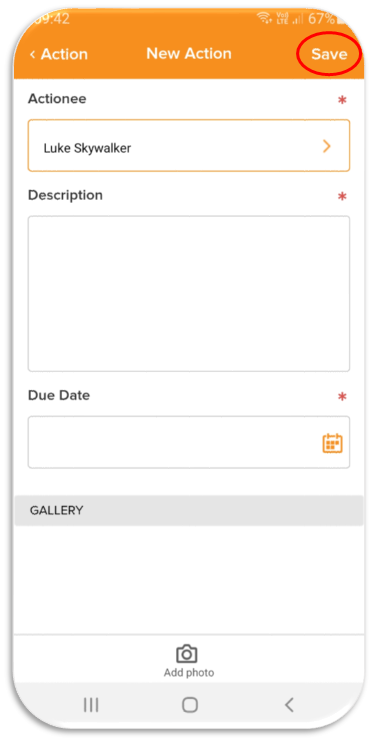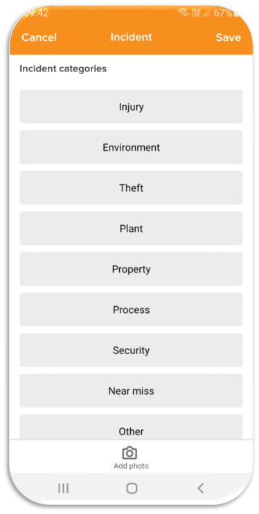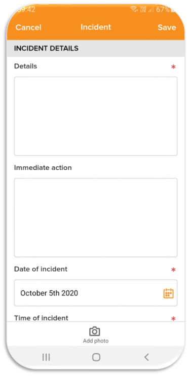 - Capture relevant photos directly within the mobile app to attach visual evidence to the incident record.