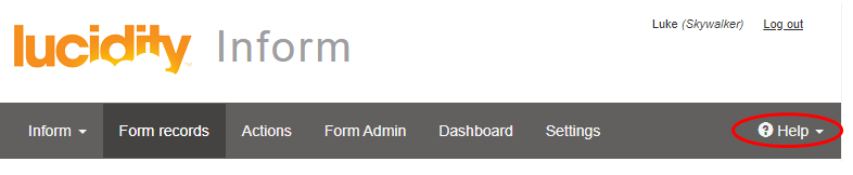 The Help icon within each Lucidity module is located in the top right hand corner and is accessible to all users.