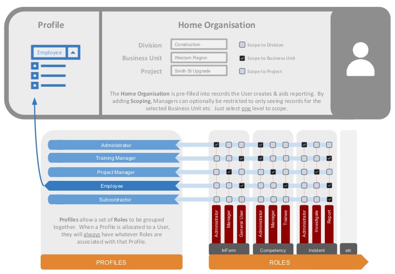 - Permissions: Manage the access profiles and roles that are assigned to users.
