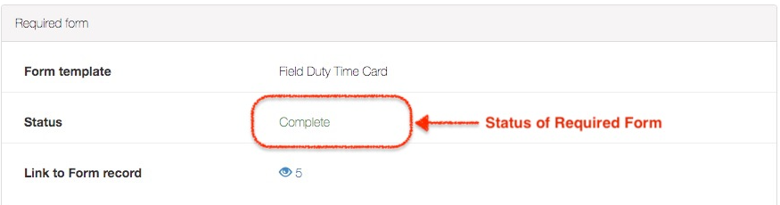 The action can be closed in the usual manner. While there is no restriction on closing an action if the required form is not complete, the status of the form is displayed within the action as a reminder. If an action is closed and the form is not complete, the form remains to be completed. Filters on the My Actions and All Actions pages allow the status of actions with corresponding required forms to be reported.
