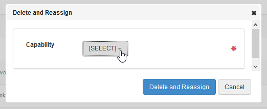 Capabilities can be deleted, and all records associated with that capability can be merged into another. This is useful when you have duplicate or similar capability titles.