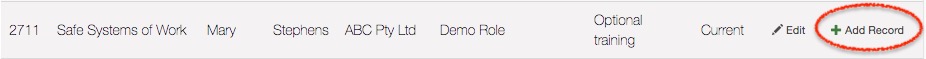 - There is an option to Add Record in line with each entry in the needs list, as illustrated below. This can be used to create a record for the user and capability specified by the need.