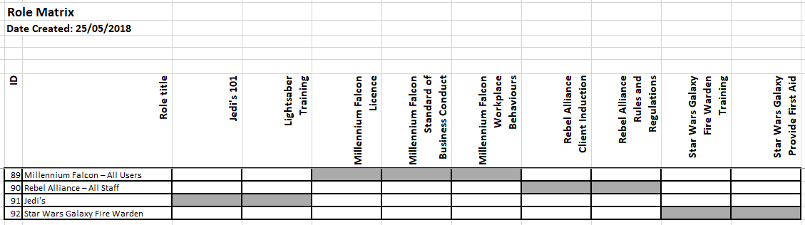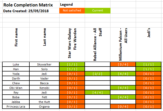 - Useful for gap analysis reporting and identifying missed users when allocating roles and needs.