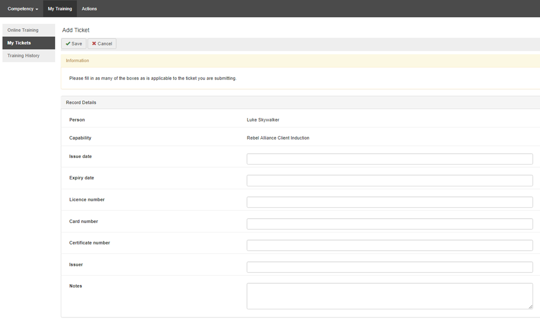 Once a ticket has been approved and recognised as a valid record within Lucidity Competency, the end-user is unable to edit the record. Administrators with appropriate permission can edit the record as required.