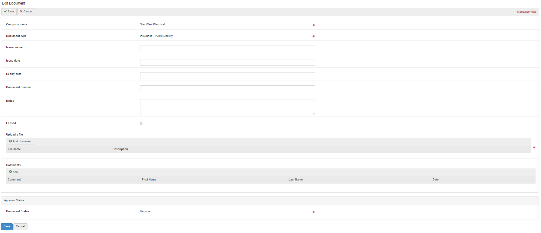 - Click Add Document.
