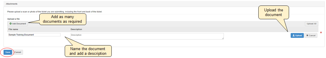 Upload, scan or photograph evidence of the ticket, including front and back where relevant.