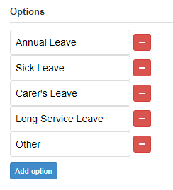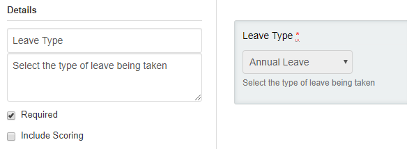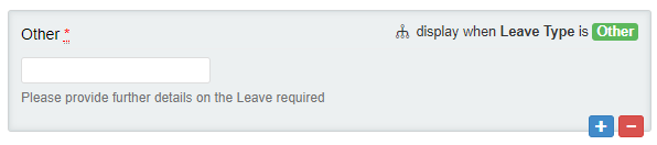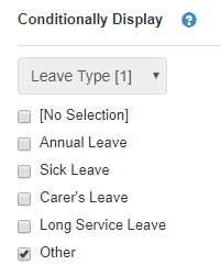 - In this example, Other has been selected. This means this text field will only be displayed to the respondent if they select a leave type of Other.