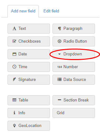 - Add checkbox, radio button, drop-down or a signature as a new field to the form.