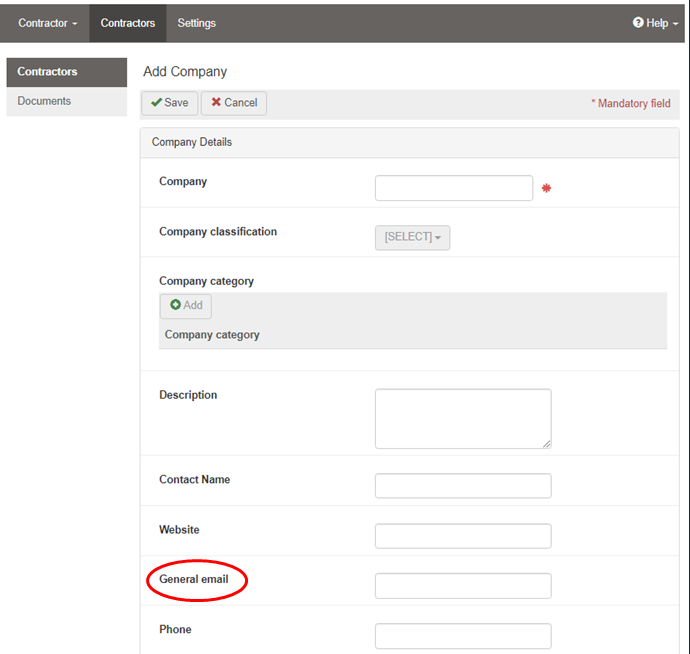 - Adding a new Contractor