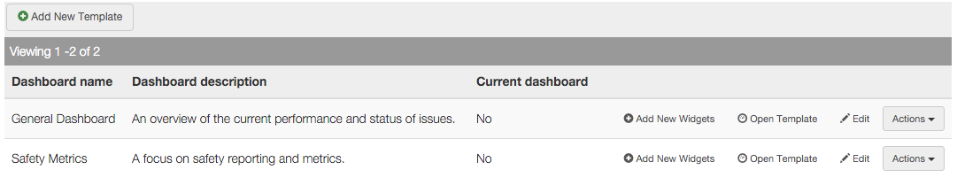 Dashboard templates can be used to provide a starting point for users to access a pre-populated dashboard. Once a dashboard template has been selected by a user, they can be modified by the user with no effect on the template. Templates will be accessible by all users with dashboard functionality.