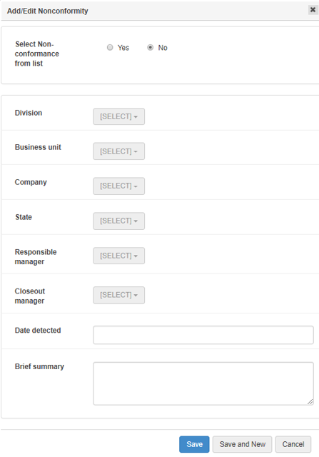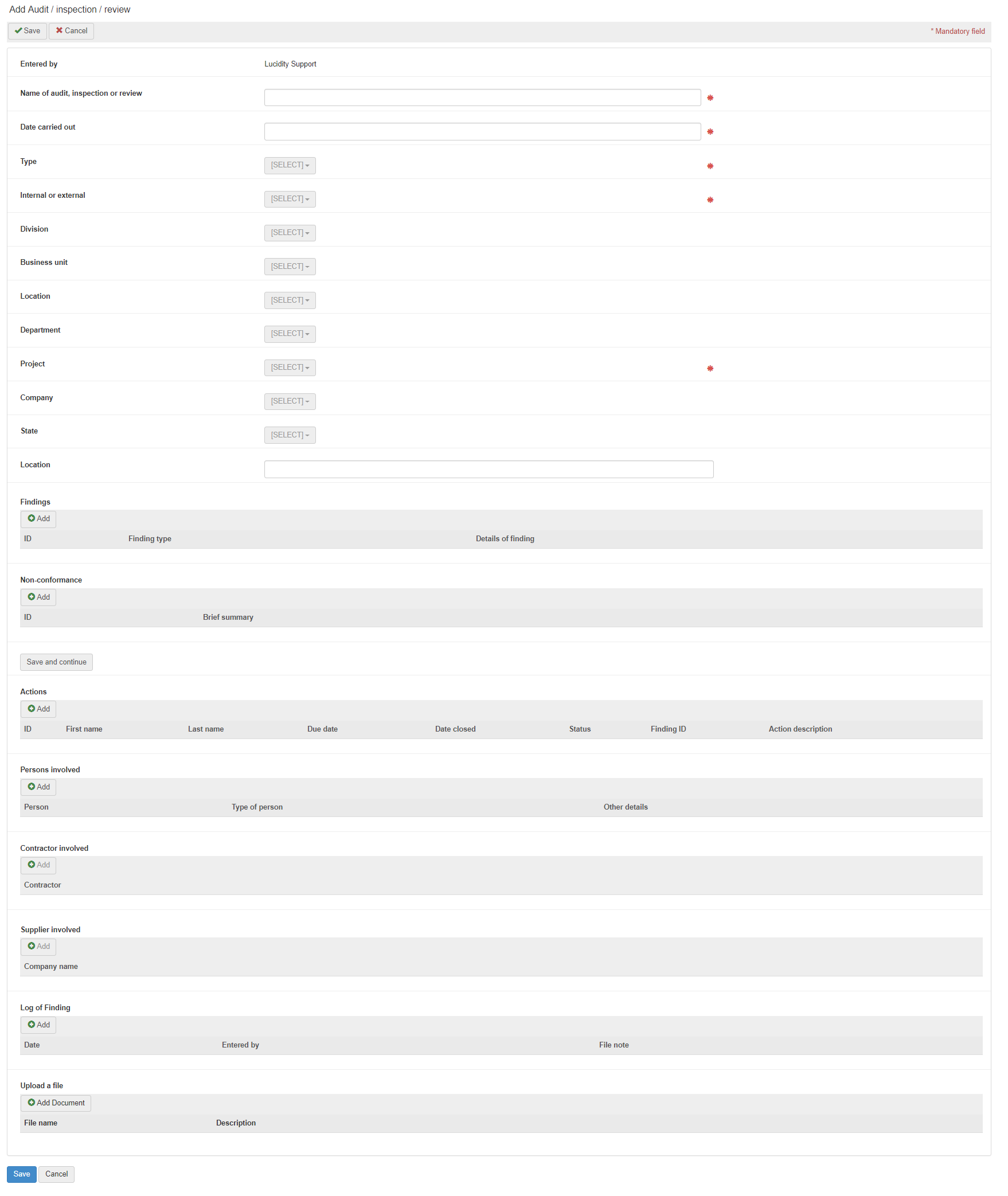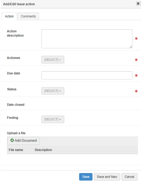 Both findings and non-conformances can be linked to actions. Actions can also be entered independently of a finding or non-conformance.