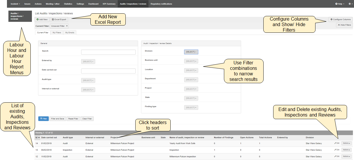 5. Reporting from the Audit Page