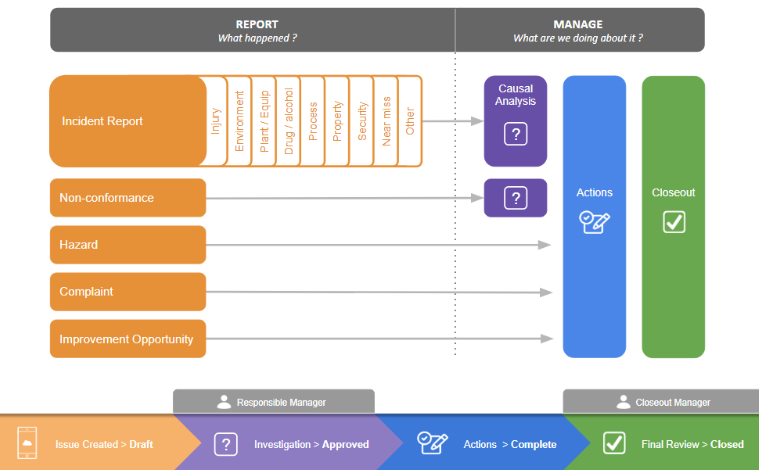 The action management system enables nominated managers to allocate responsibility to individuals to carry out certain tasks (investigations, preventative and corrective measures), meaning the current status of each issue can be tracked and reported.