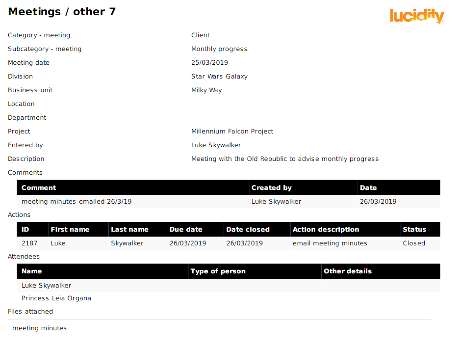 Where possible, it is recommended Lucidity InForm is used in place of this section. This will allow for much more flexibility with recording of meeting notes.