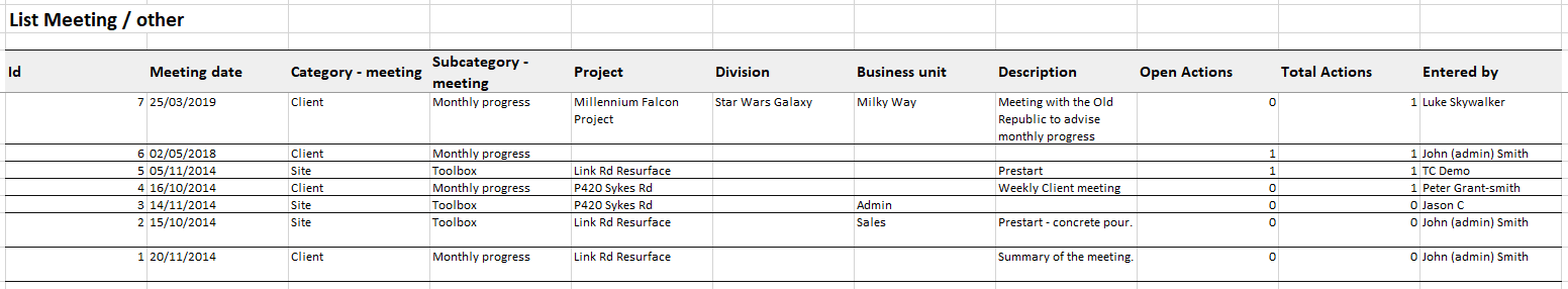 - Report on meetings in Excel format.