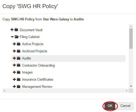 To move a file, from the Filing Cabinet tab: