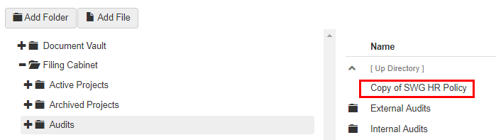 To copy a file, from the Filing Cabinet tab: