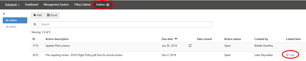- The action item will appear on each actionee's action list with a link to the file.