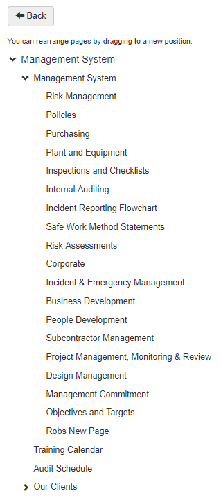 Pages displayed in the content tree of the Management System can be reordered as required. To reorder pages in the content tree, from the Management System: