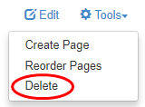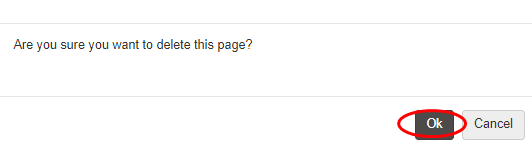 To delete a page from the Management System, from the relevant page: