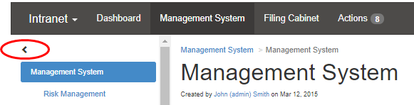 The content tree can be hidden from view to allow more viewing space for the Management System pages if required.