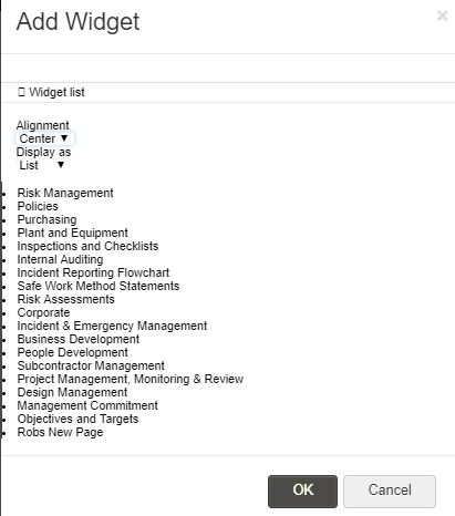 Adding image and sub-page widgets to Intranet