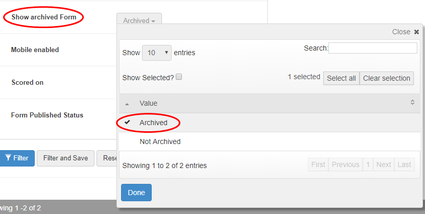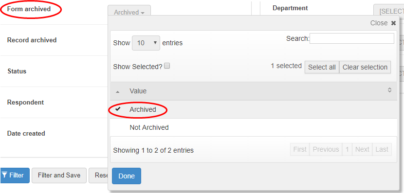 - Once archived, existing form records can be viewed from the Form Records page by applying the Form Archived filter.