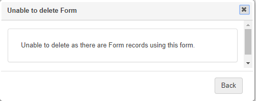 If the form still requires deletion, all associated form records must be deleted from the form records page first.