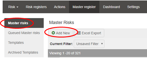 Adding a master risk is very similar to adding a risk to a project risk register. To add a new master risk, from the Master Risks page: