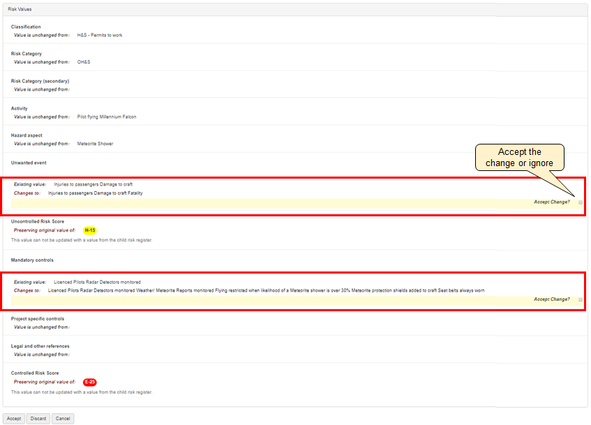 - Accept or discard recommended changes to new and edited risks.