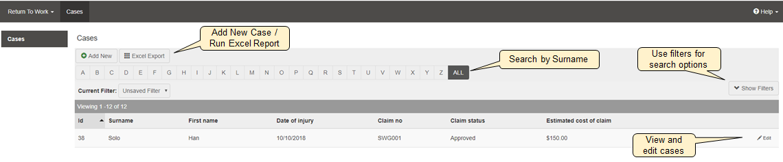 - Understanding the Return to Work Cases menu
