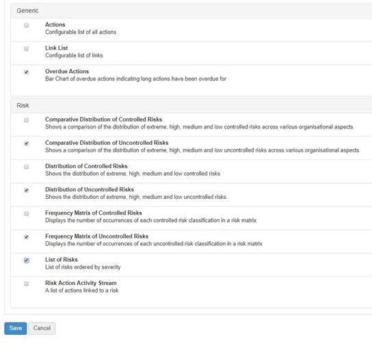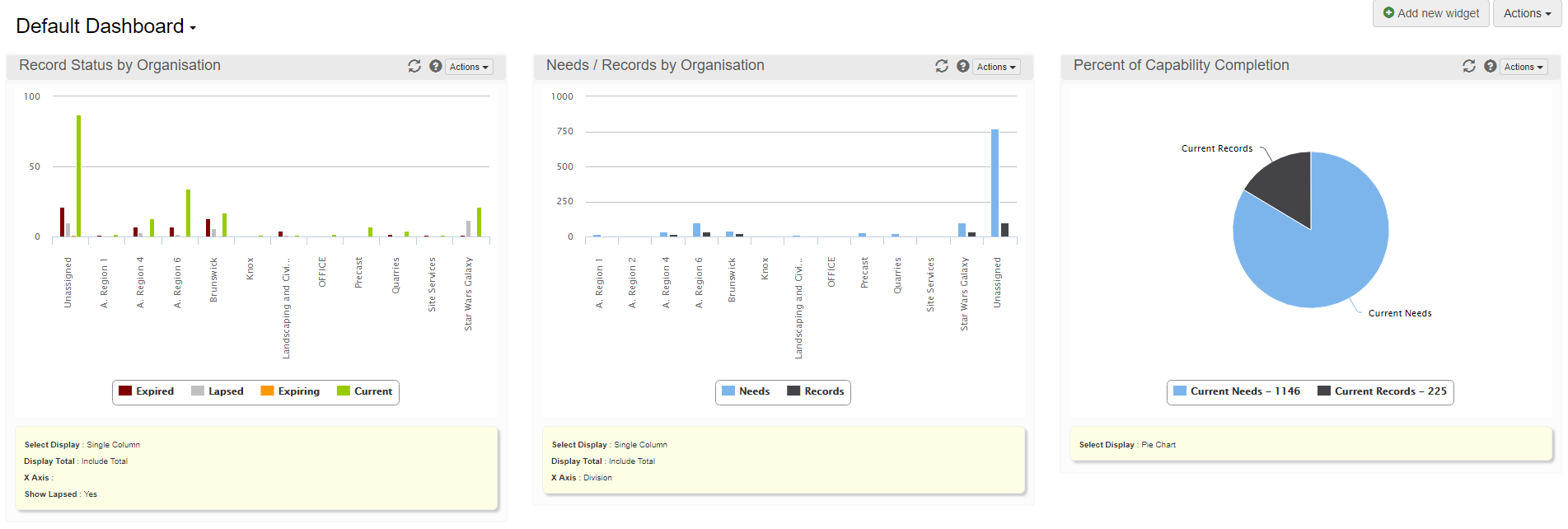 A combination of generic and module specific widgets can be added to a single dashboard.