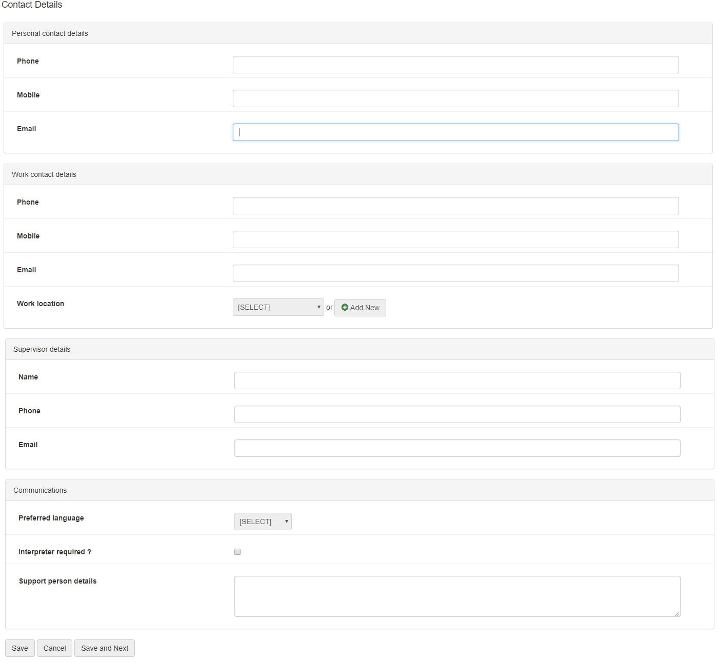 Enter the person's home email address (may be pre-populated). This may be used for correspondence in a case where the person is unable to attend the workplace. |