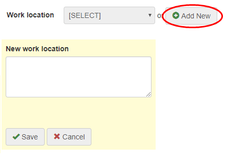 Select the person's work location from the drop-down list or click Add New if the location isn't listed. This may be different to the location where the injury occurred. |